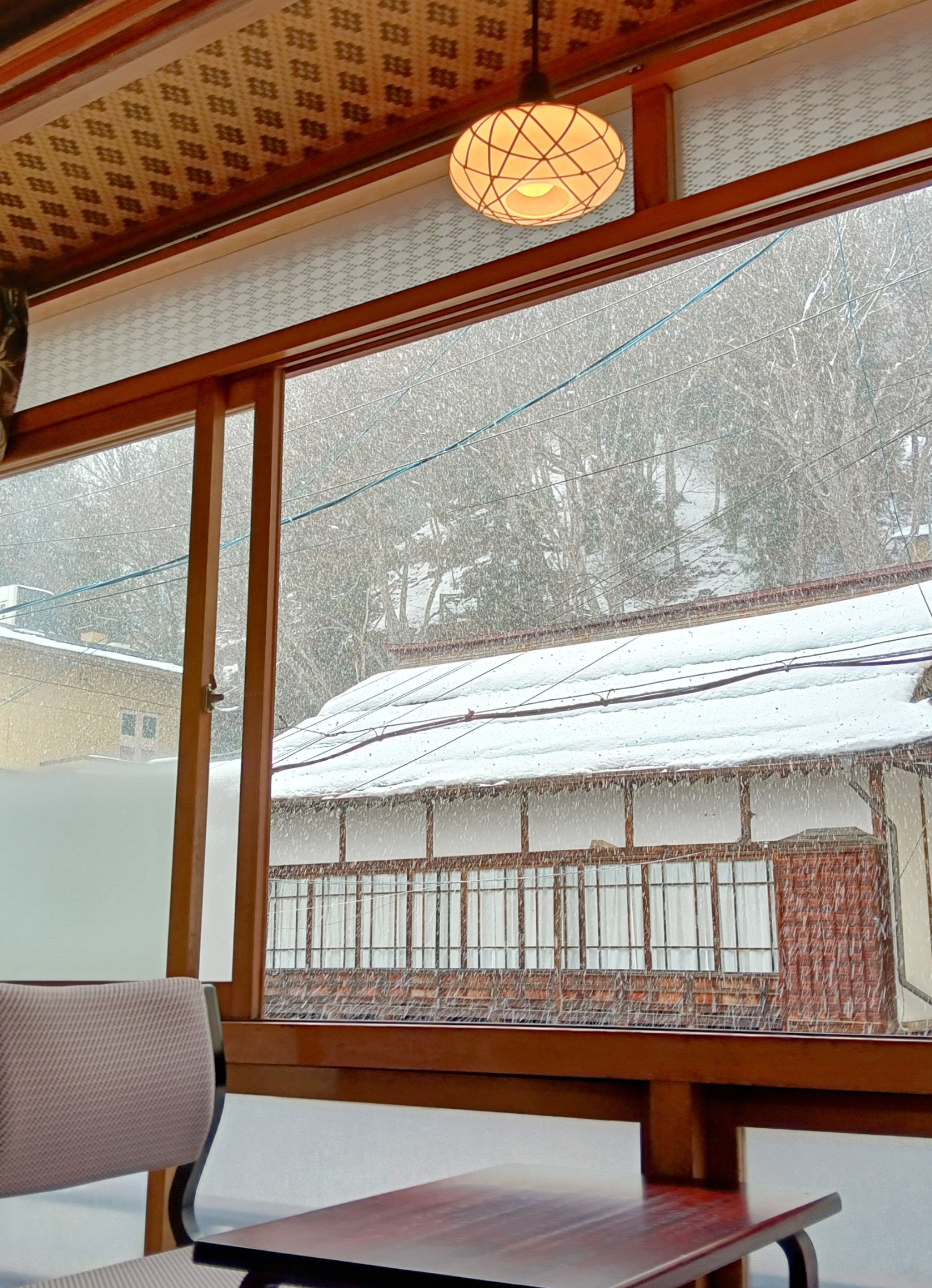 外は、雪が舞っていました。